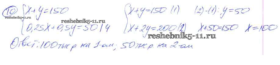 Готовая домашняя работа с ответами по Алгебре за 8 класс Евстафьева, Карп Дидактические материалы Просвещение 2017 ФГОС - О-28. Решение задач с помощью систем уравнений 10