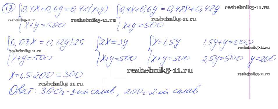 Готовая домашняя работа с ответами по Алгебре за 8 класс Евстафьева, Карп Дидактические материалы Просвещение 2017 ФГОС - О-28. Решение задач с помощью систем уравнений 17
