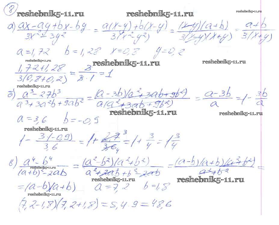 Готовая домашняя работа с ответами по Алгебре за 8 класс Евстафьева, Карп Дидактические материалы Просвещение 2017 ФГОС - О-3. Основное свойство дроби 8