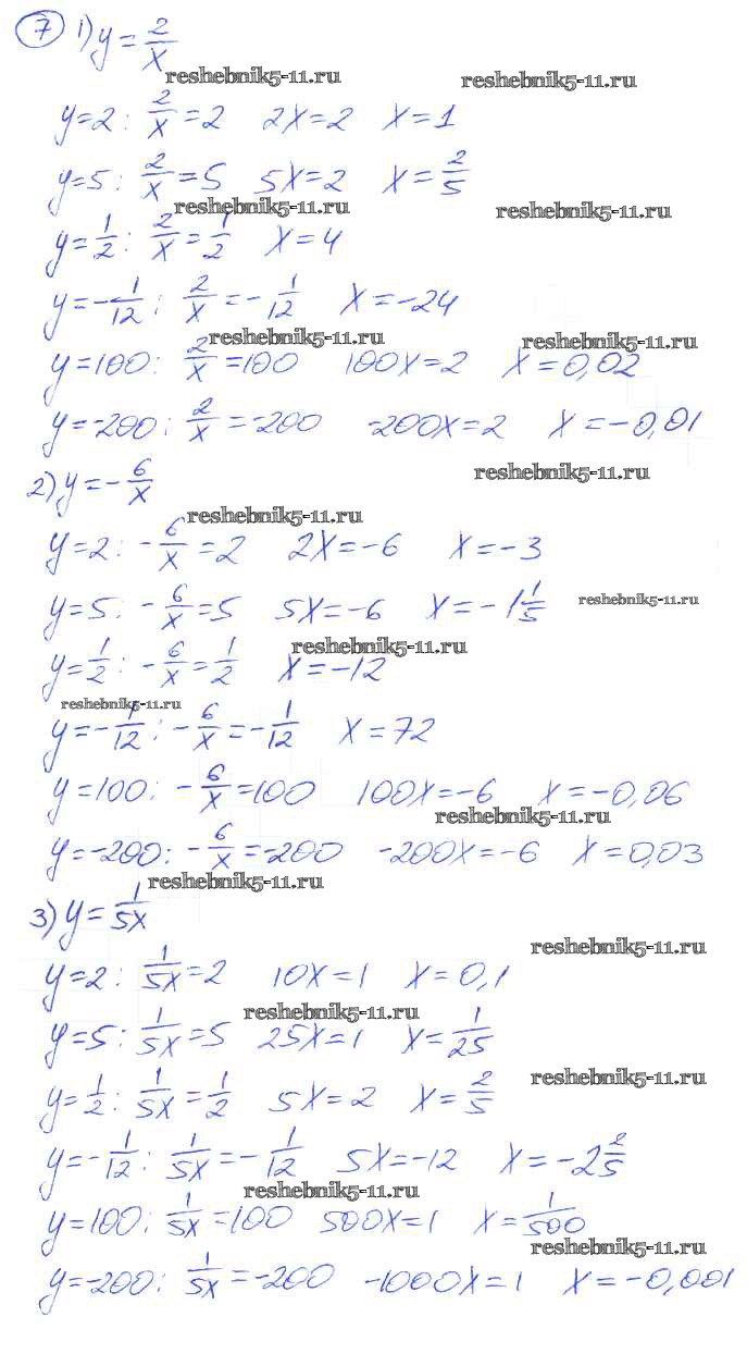 Готовая домашняя работа с ответами по Алгебре за 8 класс Евстафьева, Карп Дидактические материалы Просвещение 2017 ФГОС - О-35. Функция y = k:x и ее график 7