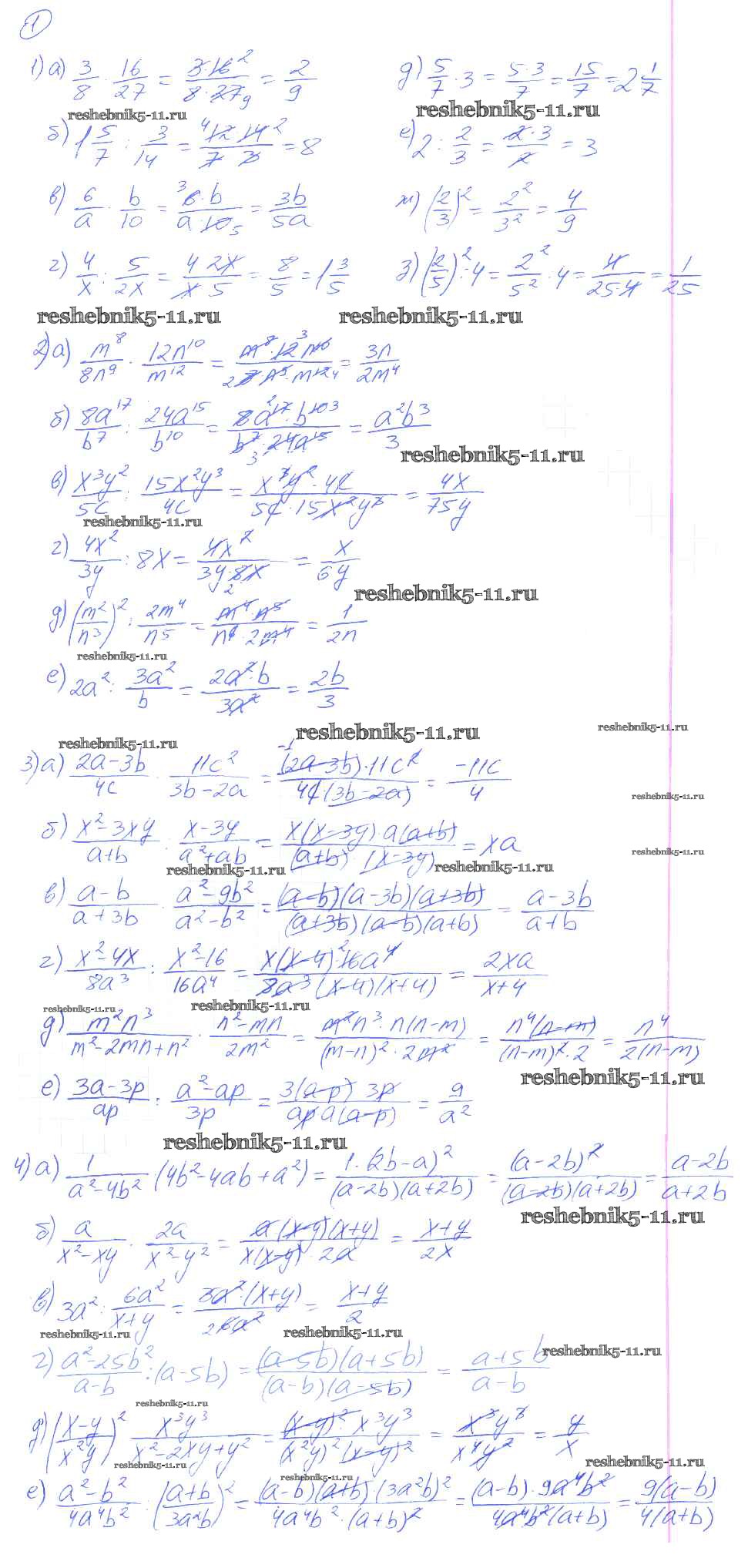 Готовая домашняя работа с ответами по Алгебре за 8 класс Евстафьева, Карп Дидактические материалы Просвещение 2017 ФГОС - О-5. Умножение и деление дробей, возведение в степень 1