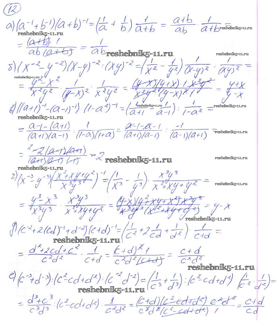 Готовая домашняя работа с ответами по Алгебре за 8 класс Евстафьева, Карп Дидактические материалы Просвещение 2017 ФГОС - О-7. Степень с целым показателем 12