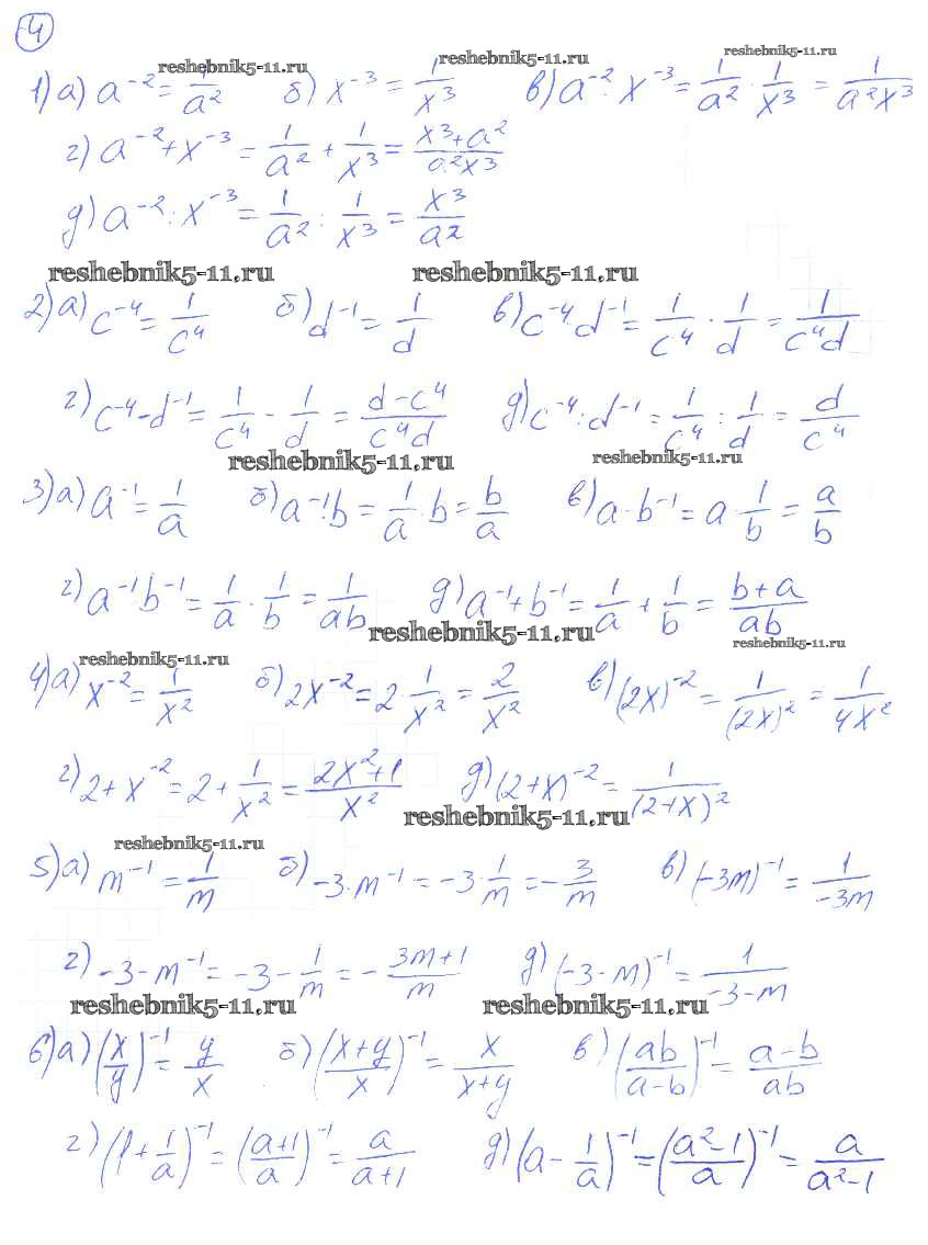 Готовая домашняя работа с ответами по Алгебре за 8 класс Евстафьева, Карп Дидактические материалы Просвещение 2017 ФГОС - О-7. Степень с целым показателем 4