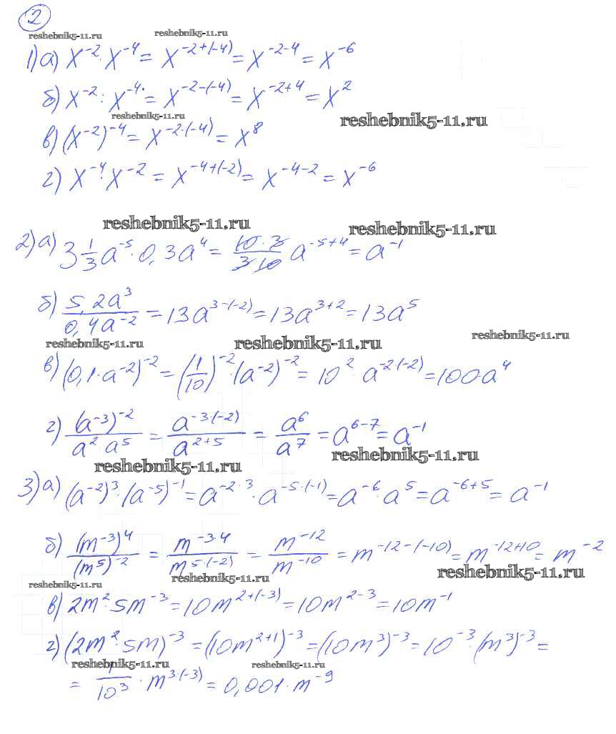 Готовая домашняя работа с ответами по Алгебре за 8 класс Евстафьева, Карп Дидактические материалы Просвещение 2017 ФГОС - О-8. Свойства степени с целым показателем 2