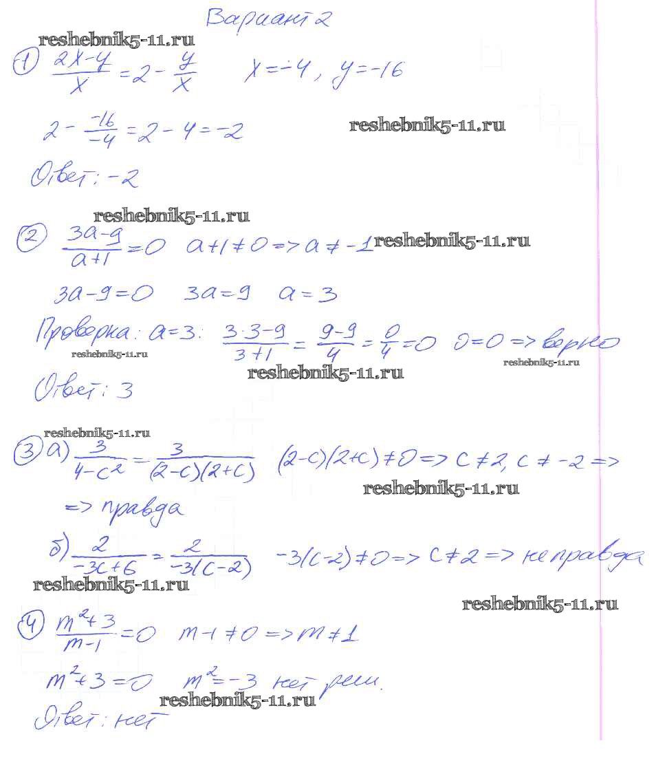 Готовая домашняя работа с ответами по Алгебре за 8 класс Евстафьева, Карп Дидактические материалы Просвещение 2017 ФГОС - П-1. Алгебраические дроби Вариант 2