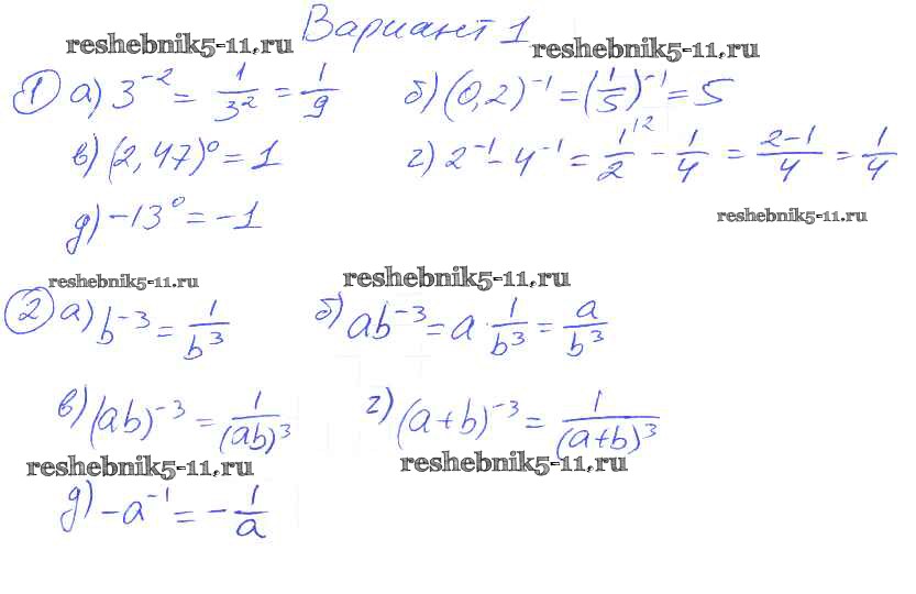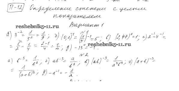 Готовая домашняя работа с ответами по Алгебре за 8 класс Евстафьева, Карп Дидактические материалы Просвещение 2017 ФГОС - П-12. Определение степени с целым показателем Вариант 1
