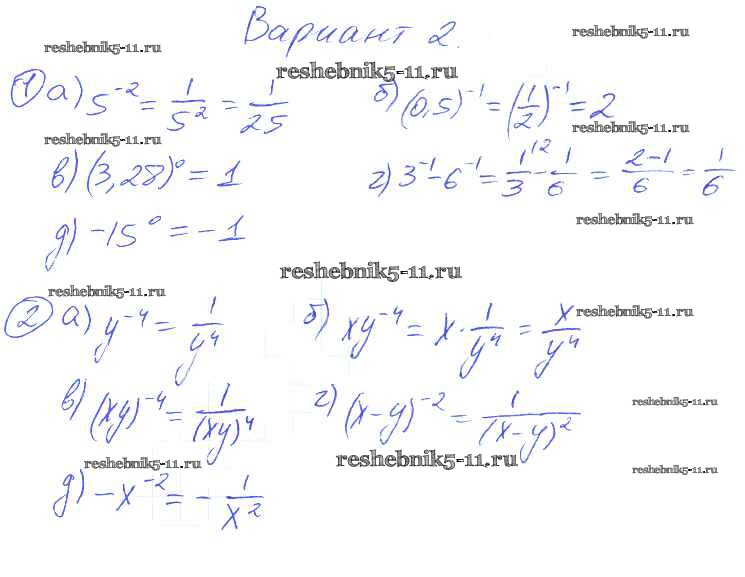Готовая домашняя работа с ответами по Алгебре за 8 класс Евстафьева, Карп Дидактические материалы Просвещение 2017 ФГОС - П-12. Определение степени с целым показателем Вариант 2