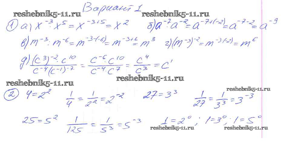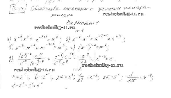 Готовая домашняя работа с ответами по Алгебре за 8 класс Евстафьева, Карп Дидактические материалы Просвещение 2017 ФГОС - П-14. Свойства степени с целым показателем Вариант 1