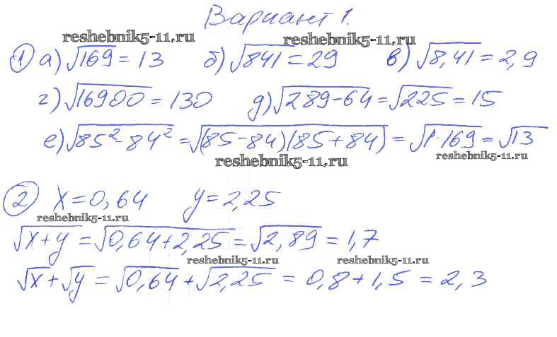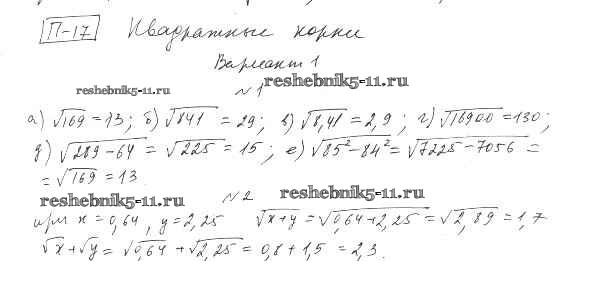 Готовая домашняя работа с ответами по Алгебре за 8 класс Евстафьева, Карп Дидактические материалы Просвещение 2017 ФГОС - П-17. Квадратные корни Вариант 1