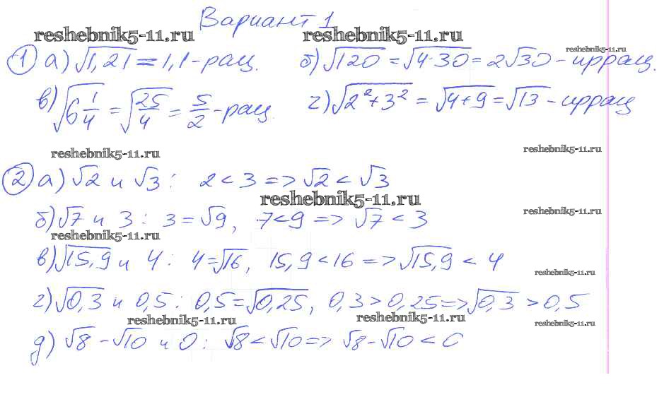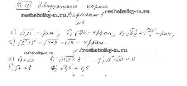 Готовая домашняя работа с ответами по Алгебре за 8 класс Евстафьева, Карп Дидактические материалы Просвещение 2017 ФГОС - П-18. Квадратные корни Вариант 1