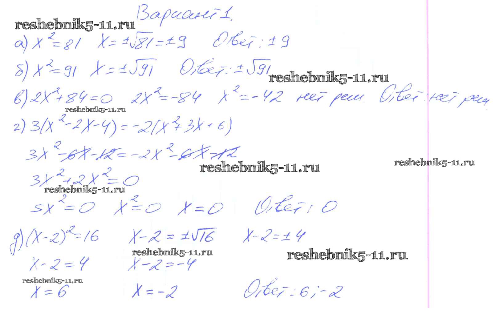 Готовая домашняя работа с ответами по Алгебре за 8 класс Евстафьева, Карп Дидактические материалы Просвещение 2017 ФГОС - П-19. Уравнения вида х2 = a Вариант 1