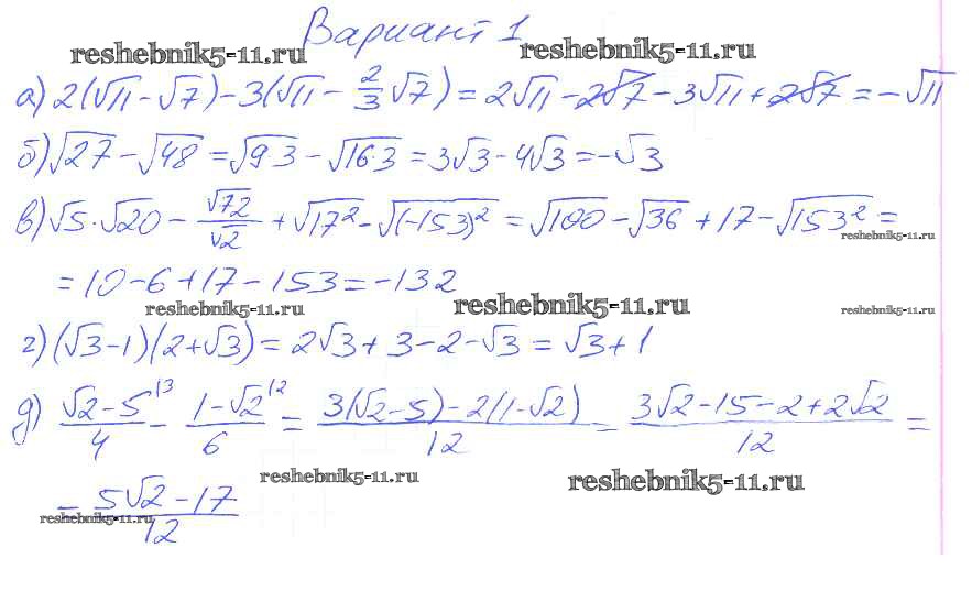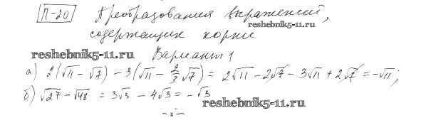 Готовая домашняя работа с ответами по Алгебре за 8 класс Евстафьева, Карп Дидактические материалы Просвещение 2017 ФГОС - П-20. Неполные квадратные уравнения Вариант 1