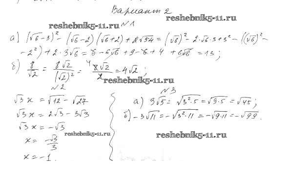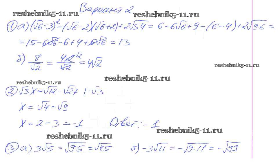 Алгебра за 8 класс Евстафьева Дидактические материалы Просвещение п-21 Вариант 2