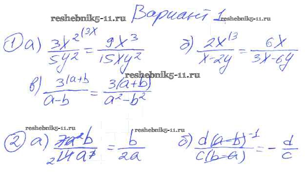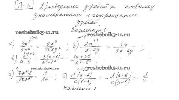 Готовая домашняя работа с ответами по Алгебре за 8 класс Евстафьева, Карп Дидактические материалы Просвещение 2017 ФГОС - П-3. Приведение дробей к новому знаменателю и сокращение дробей Вариант 1