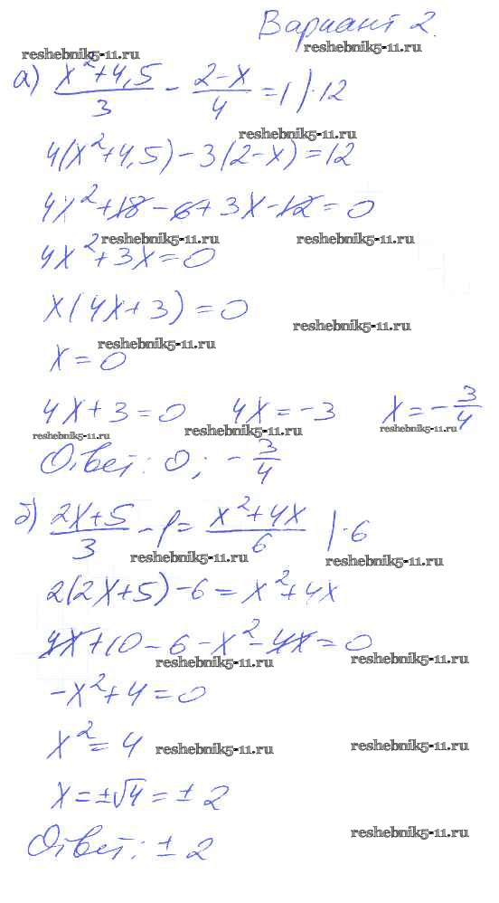 Готовая домашняя работа с ответами по Алгебре за 8 класс Евстафьева, Карп Дидактические материалы Просвещение 2017 ФГОС - П-31. Решение неполных квадратных уравнений Вариант 2