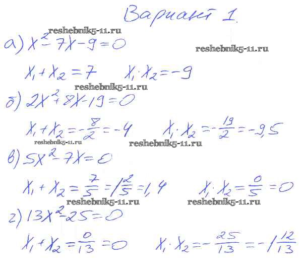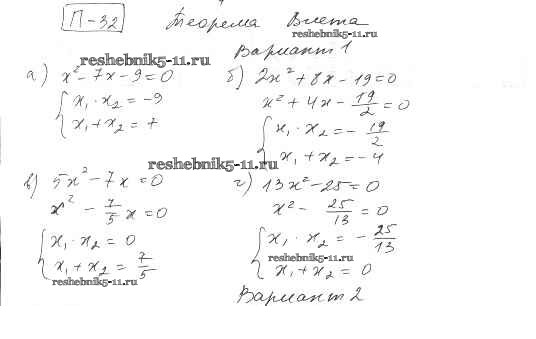 Готовая домашняя работа с ответами по Алгебре за 8 класс Евстафьева, Карп Дидактические материалы Просвещение 2017 ФГОС - П-32. Теорема Виета Вариант 1