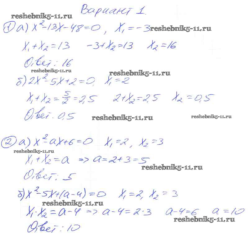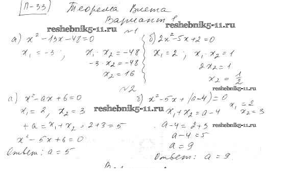 Готовая домашняя работа с ответами по Алгебре за 8 класс Евстафьева, Карп Дидактические материалы Просвещение 2017 ФГОС - П-33. Теорема Виета Вариант 1
