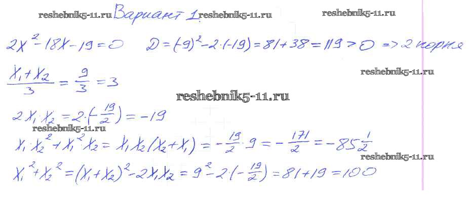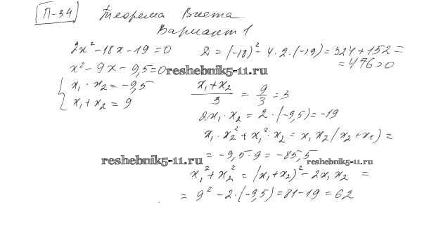Готовая домашняя работа с ответами по Алгебре за 8 класс Евстафьева, Карп Дидактические материалы Просвещение 2017 ФГОС - П-34. Теорема Виета Вариант 1