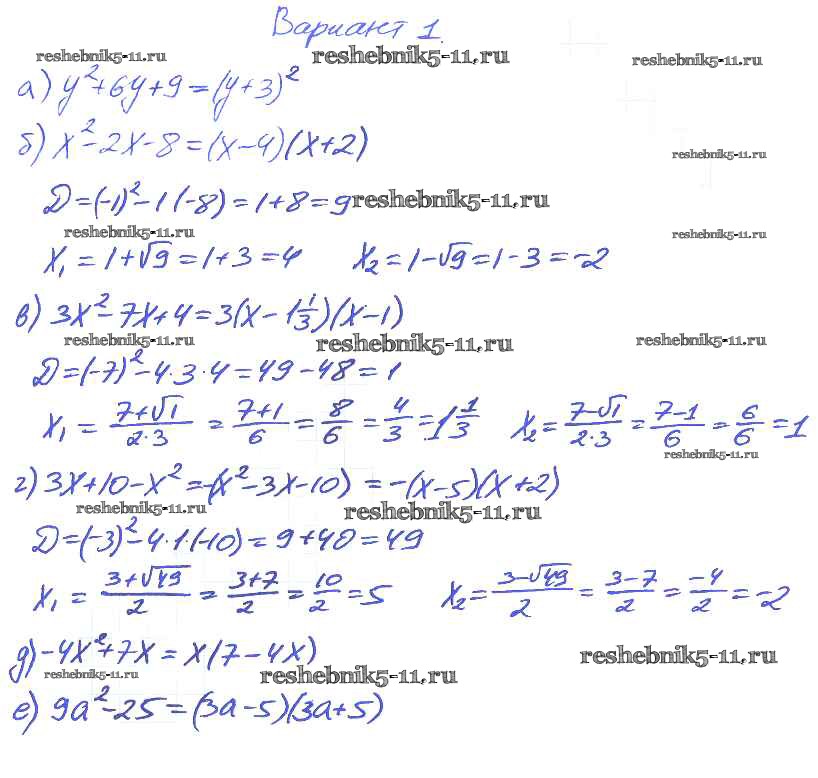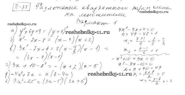 Готовая домашняя работа с ответами по Алгебре за 8 класс Евстафьева, Карп Дидактические материалы Просвещение 2017 ФГОС - П-35. Разложение квадратного трехчлена на множители Вариант 1