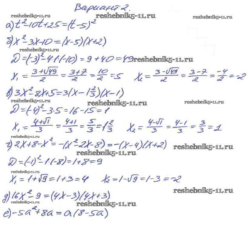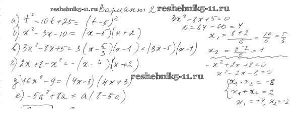 Готовая домашняя работа с ответами по Алгебре за 8 класс Евстафьева, Карп Дидактические материалы Просвещение 2017 ФГОС - П-35. Разложение квадратного трехчлена на множители Вариант 2