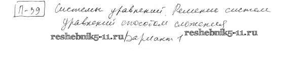 П-39. Системы уравнений. Решение систем уравнений способом сложения