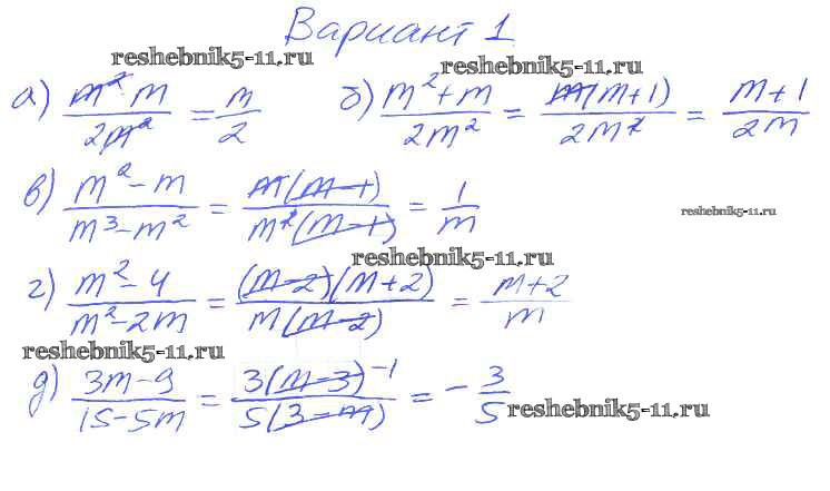 Готовая домашняя работа с ответами по Алгебре за 8 класс Евстафьева, Карп Дидактические материалы Просвещение 2017 ФГОС - П-4. Сокращение дробей Вариант 1