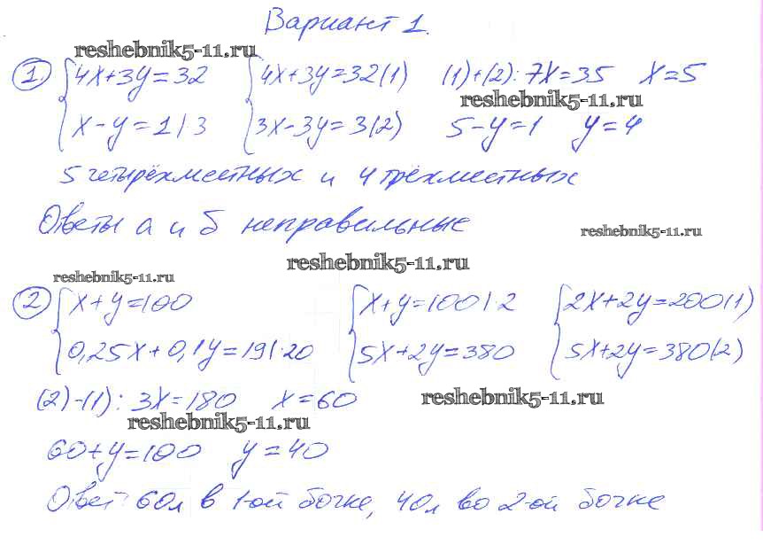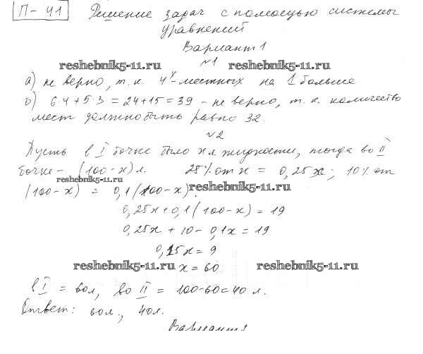 Готовая домашняя работа с ответами по Алгебре за 8 класс Евстафьева, Карп Дидактические материалы Просвещение 2017 ФГОС - П-41. Решение задач с помощью систем уравнений Вариант 1