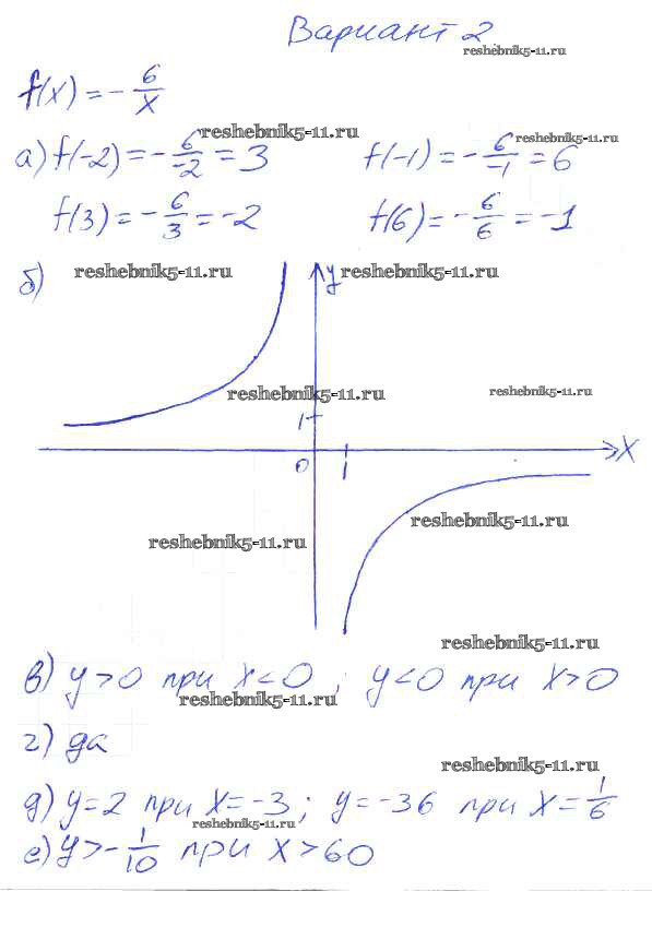 Готовая домашняя работа с ответами по Алгебре за 8 класс Евстафьева, Карп Дидактические материалы Просвещение 2017 ФГОС - П-48. Функция y = k:x и ее график Вариант 2