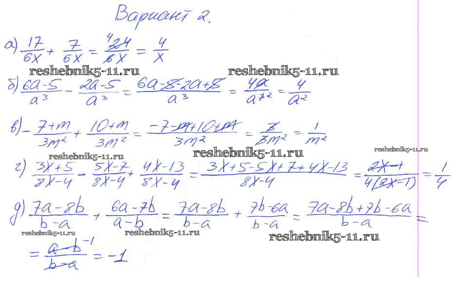 Готовая домашняя работа с ответами по Алгебре за 8 класс Евстафьева, Карп Дидактические материалы Просвещение 2017 ФГОС - П-5. Сложение и вычитание дробей Вариант 2