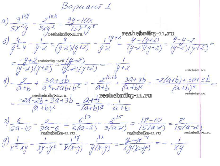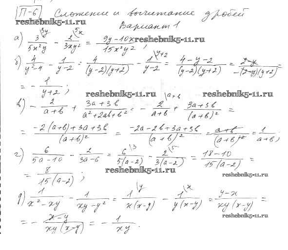 Готовая домашняя работа с ответами по Алгебре за 8 класс Евстафьева, Карп Дидактические материалы Просвещение 2017 ФГОС - П-6. Сложение и вычитание дробей Вариант 1