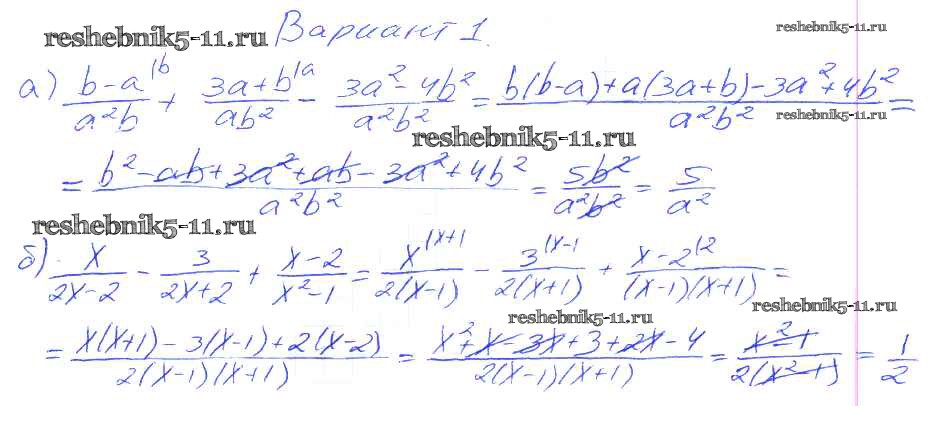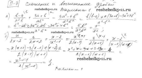 Готовая домашняя работа с ответами по Алгебре за 8 класс Евстафьева, Карп Дидактические материалы Просвещение 2017 ФГОС - П-7. Сложение и вычитание дробей Вариант 1