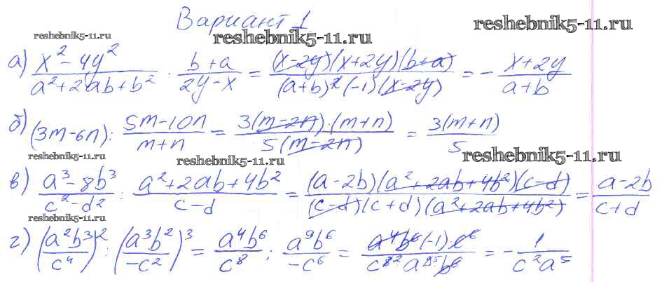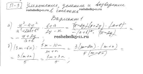 Готовая домашняя работа с ответами по Алгебре за 8 класс Евстафьева, Карп Дидактические материалы Просвещение 2017 ФГОС - П-9. Умножение, деление и возведение в степень Вариант 1