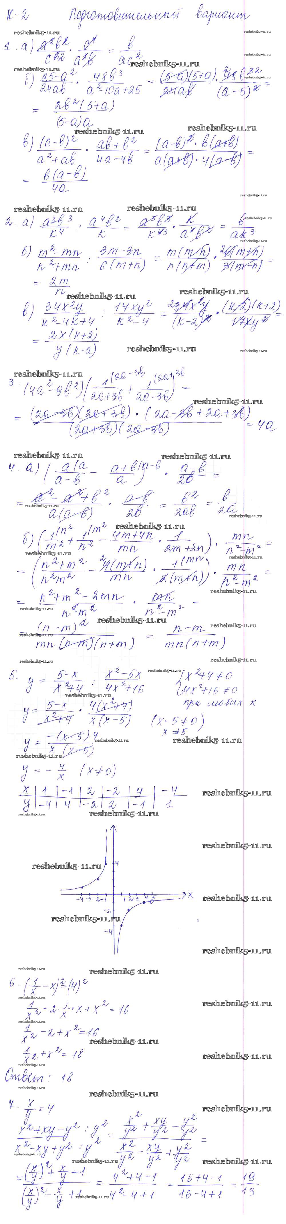 КР-2. Умножение и деление, совместные действия с алгебраическими дробями