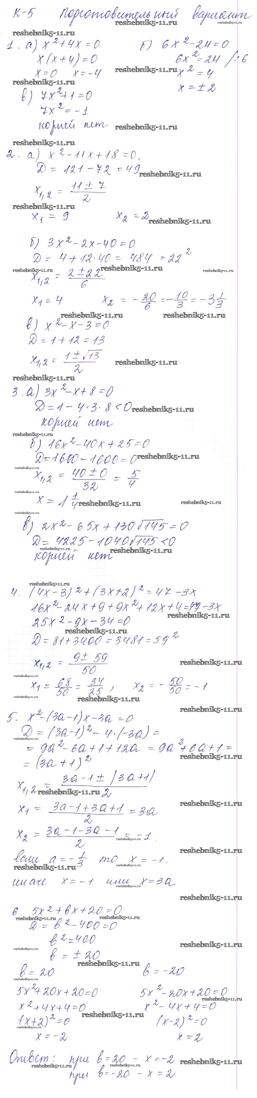 Готовая домашняя работа с ответами по Алгебре за 8 класс Звавич, Дьяконова Дидактические материалы УМК Экзамен 2015 ФГОС - КР-5. Квадратные уравнения Подготовительный вариант
