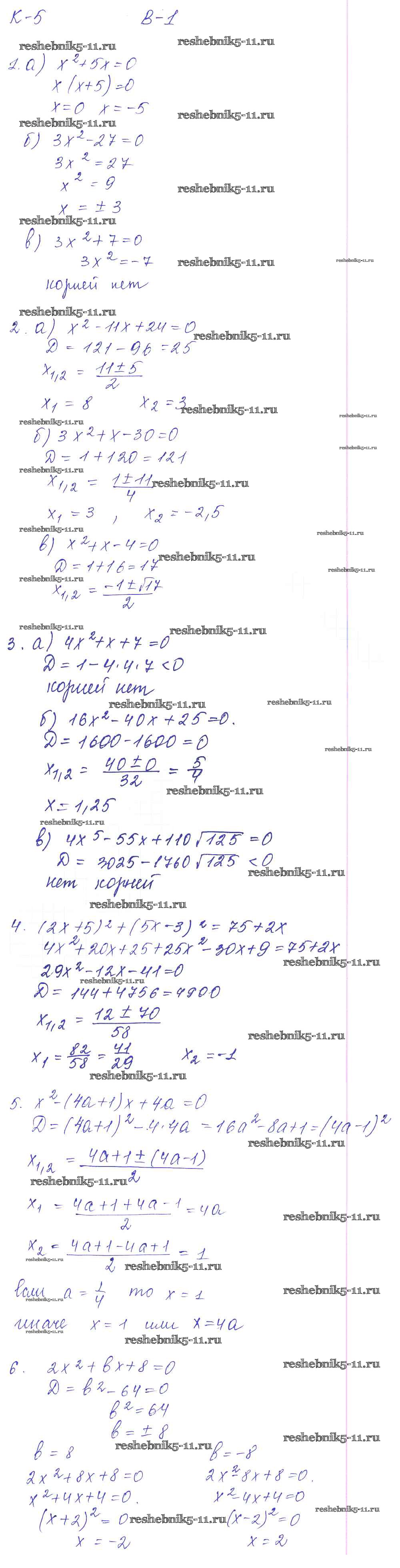 Готовая домашняя работа с ответами по Алгебре за 8 класс Звавич, Дьяконова Дидактические материалы УМК Экзамен 2015 ФГОС - КР-5. Квадратные уравнения Вариант 1