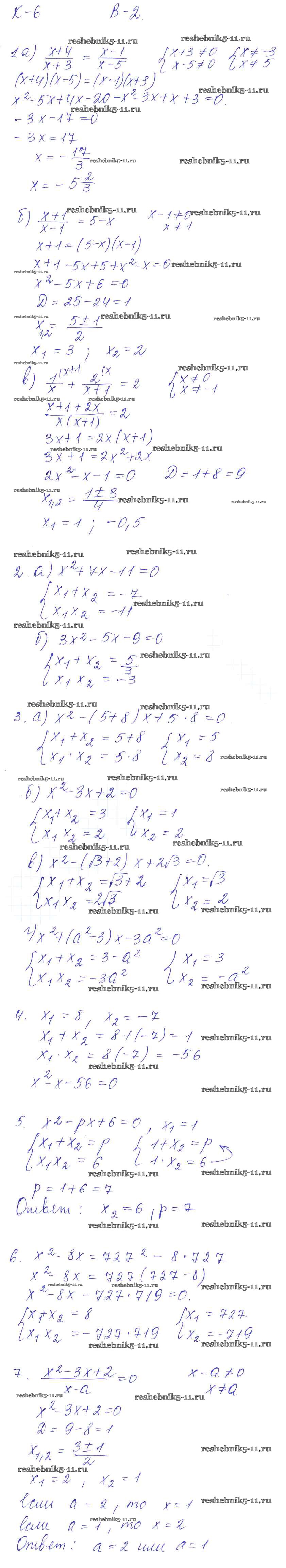 Готовая домашняя работа с ответами по Алгебре за 8 класс Звавич, Дьяконова Дидактические материалы УМК Экзамен 2015 ФГОС - КР-6. Уравнения, сводящиеся к квадратным. Теорема Виета Вариант 2