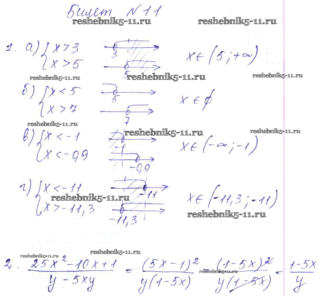 Алгебра за 8 класс Звавич Дидактические материалы УМК Экзамен билет 11