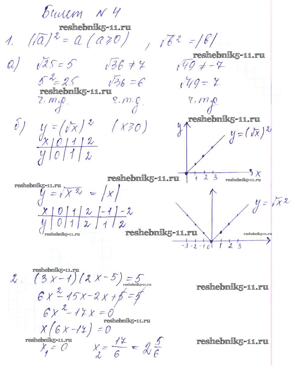 Готовая домашняя работа с ответами по Алгебре за 8 класс Звавич, Дьяконова Дидактические материалы УМК Экзамен 2015 ФГОС - Билеты к устному зачёту 4