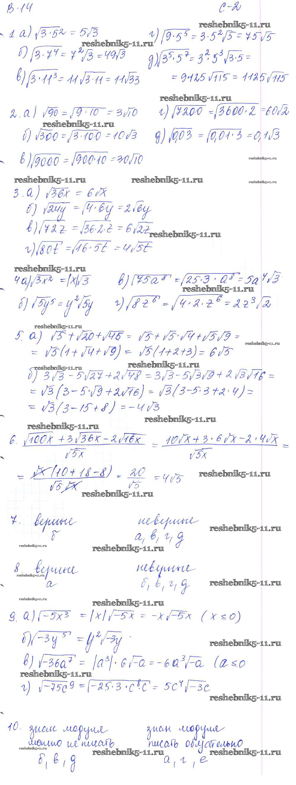 Готовая домашняя работа с ответами по Алгебре за 8 класс Звавич, Дьяконова Дидактические материалы УМК Экзамен 2015 ФГОС - СР - 14. Вынесение множителя из-под знака корня 2