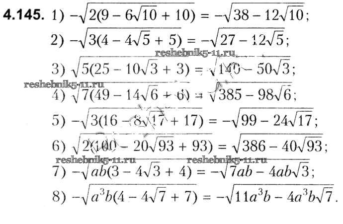 Готовая домашняя работа с ответами по Алгебре за 8 класс Кузнецова, Муравьева, Шнеперман, Ящин Учебник Народная асвета 2015 - Глава 4 4.145