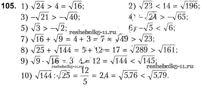 Готовая домашняя работа с ответами по Алгебре за 8 класс Кузнецова, Муравьева, Шнеперман, Ящин Учебник Народная асвета 2015 - Повторение 105