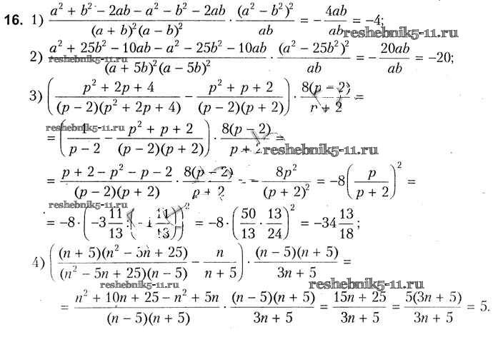 Готовая домашняя работа с ответами по Алгебре за 8 класс Кузнецова, Муравьева, Шнеперман, Ящин Учебник Народная асвета 2015 - Повторение 16