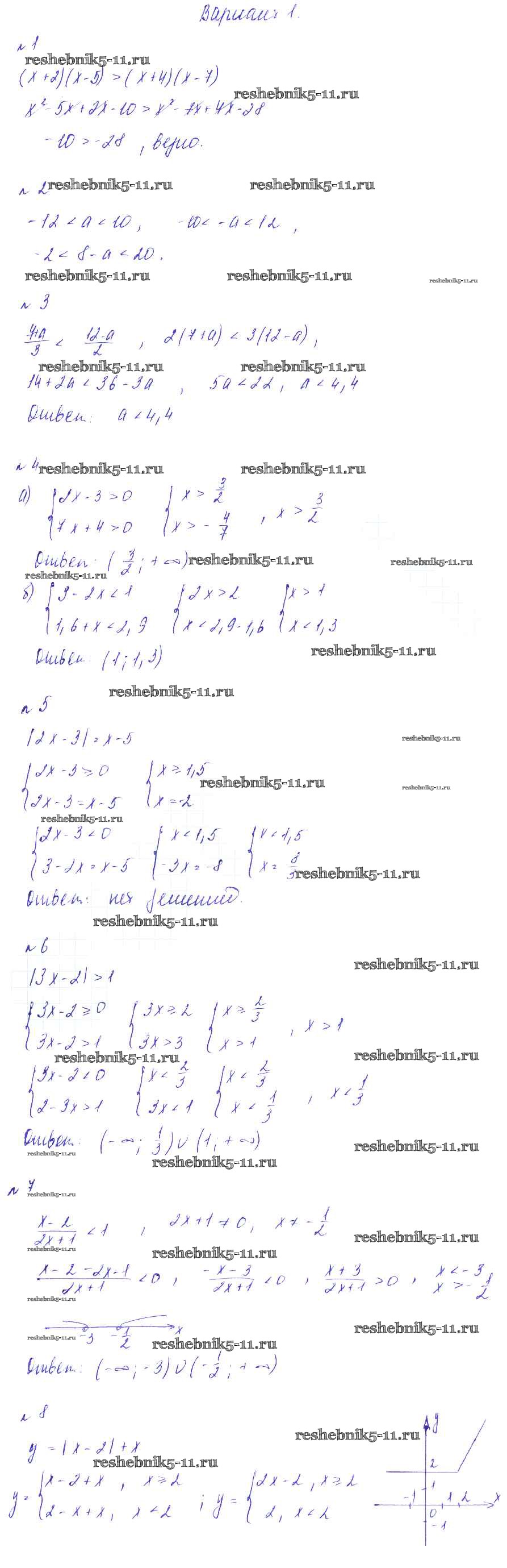Готовая домашняя работа с ответами по Алгебре за 8 класс Зив, Гольдич Дидактические материалы Виктория плюс 2012 ФГОС - КР №1. Неравенства. Варианты 1