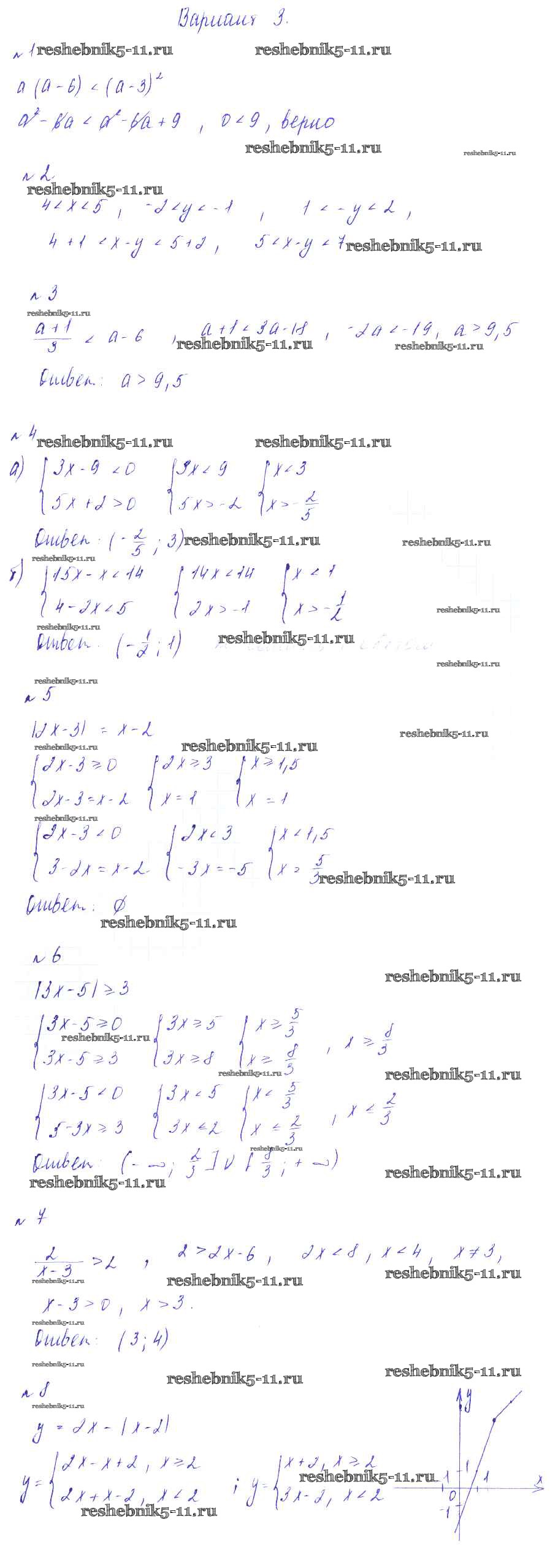 Готовая домашняя работа с ответами по Алгебре за 8 класс Зив, Гольдич Дидактические материалы Виктория плюс 2012 ФГОС - КР №1. Неравенства. Варианты 3