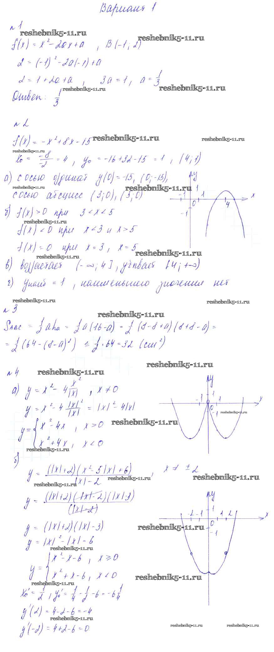Готовая домашняя работа с ответами по Алгебре за 8 класс Зив, Гольдич Дидактические материалы Виктория плюс 2012 ФГОС - КР №4. Квадратные уравнения. Варианты 1