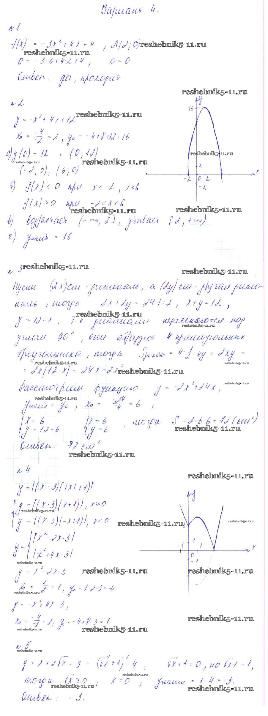 КР №5. Квадратичная функция. Варианты