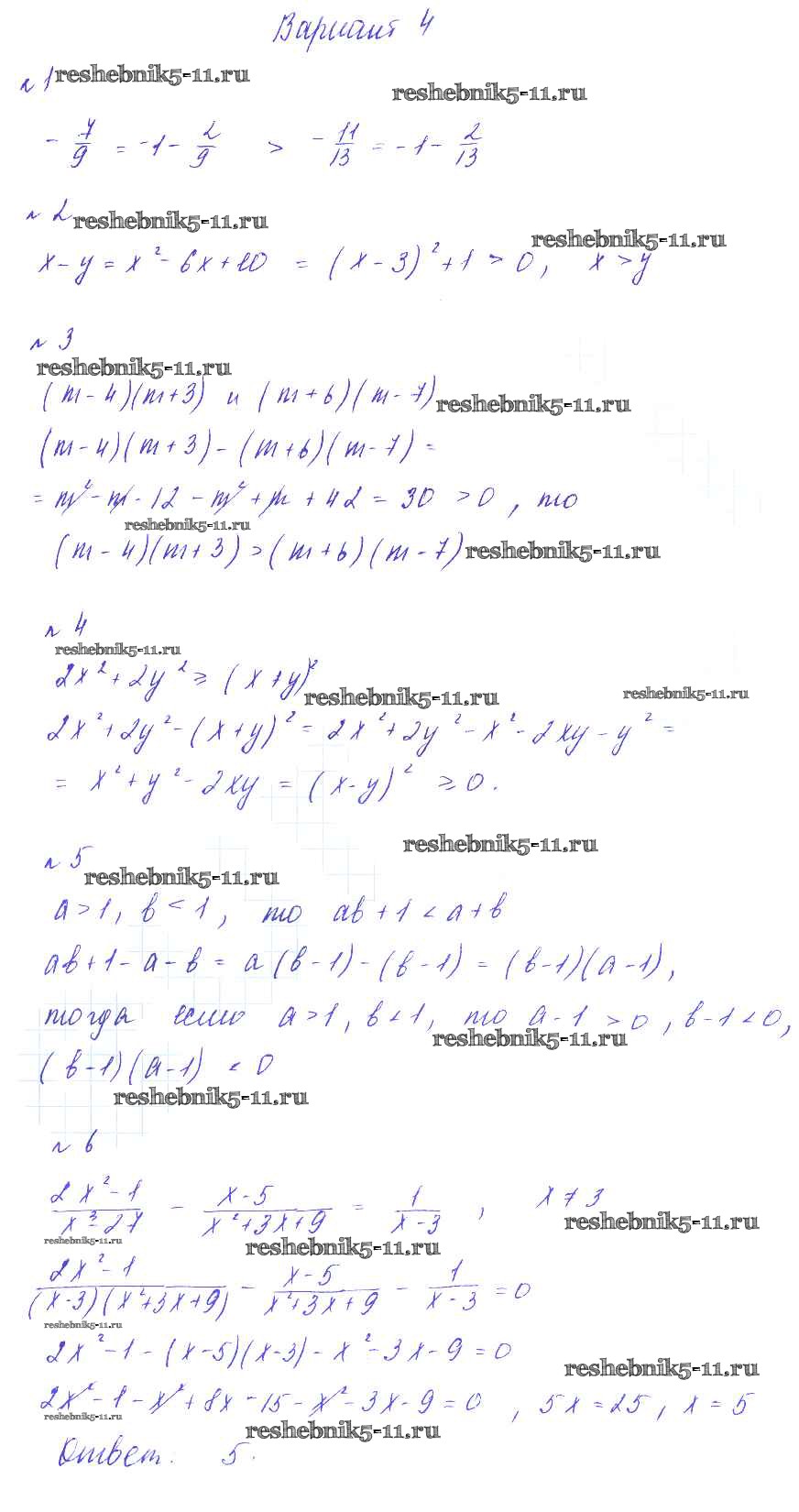 Готовая домашняя работа с ответами по Алгебре за 8 класс Зив, Гольдич Дидактические материалы Виктория плюс 2012 ФГОС - СР №1. Положительные и отрицательные числа. Числовые неравенства Вариант-4