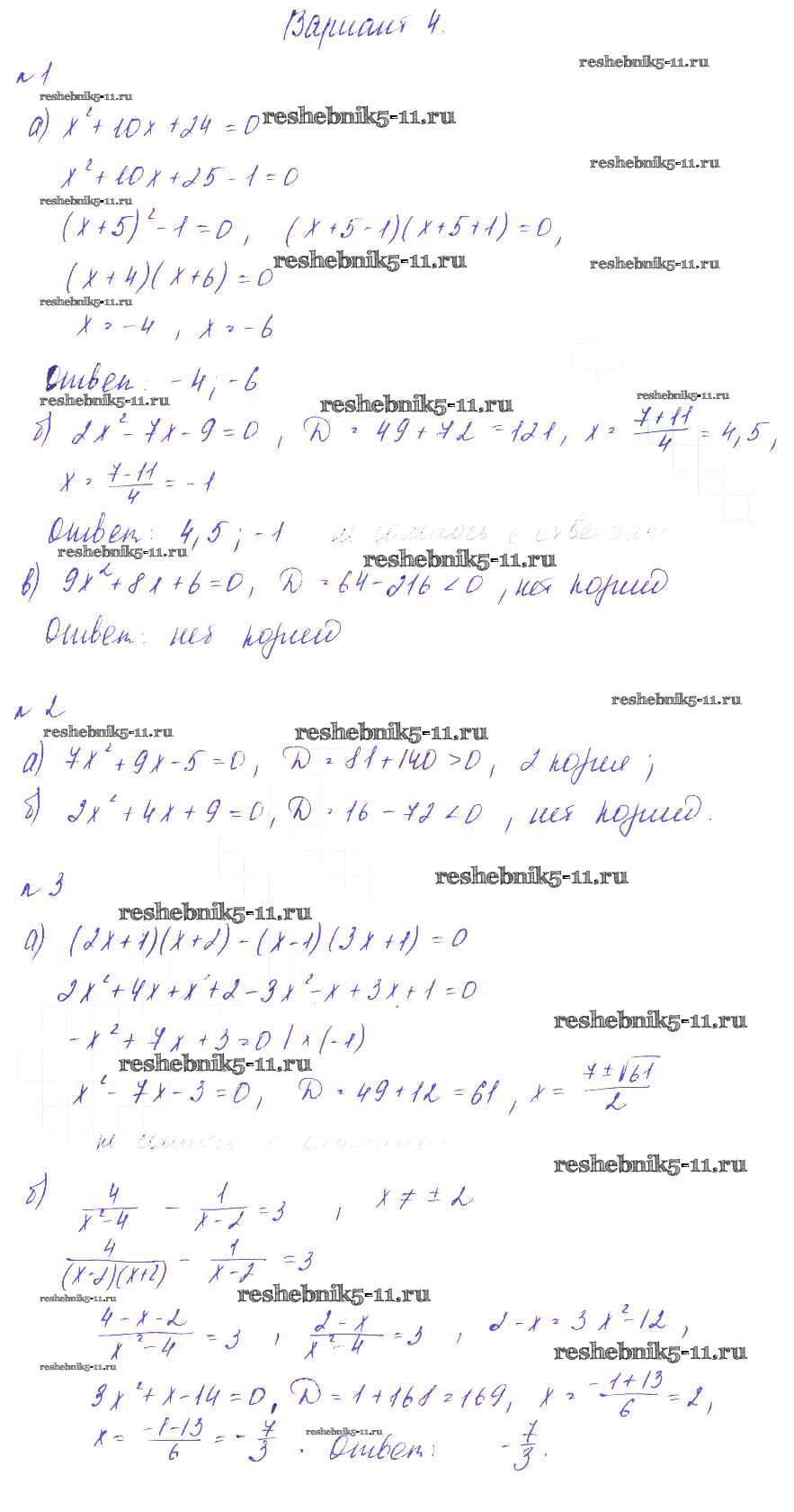 КР №4. Квадратные уравнения. Варианты
