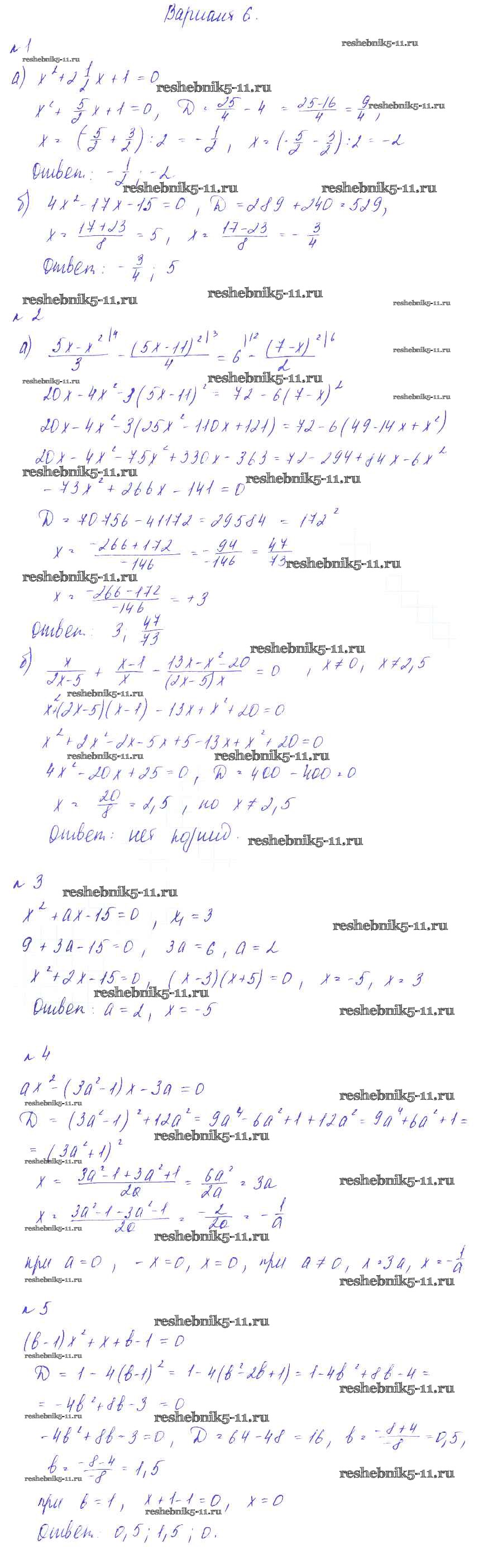 Готовая домашняя работа с ответами по Алгебре за 8 класс Зив, Гольдич Дидактические материалы Виктория плюс 2012 ФГОС - СР №10. Решение квадратных уравнений Вариант-6
