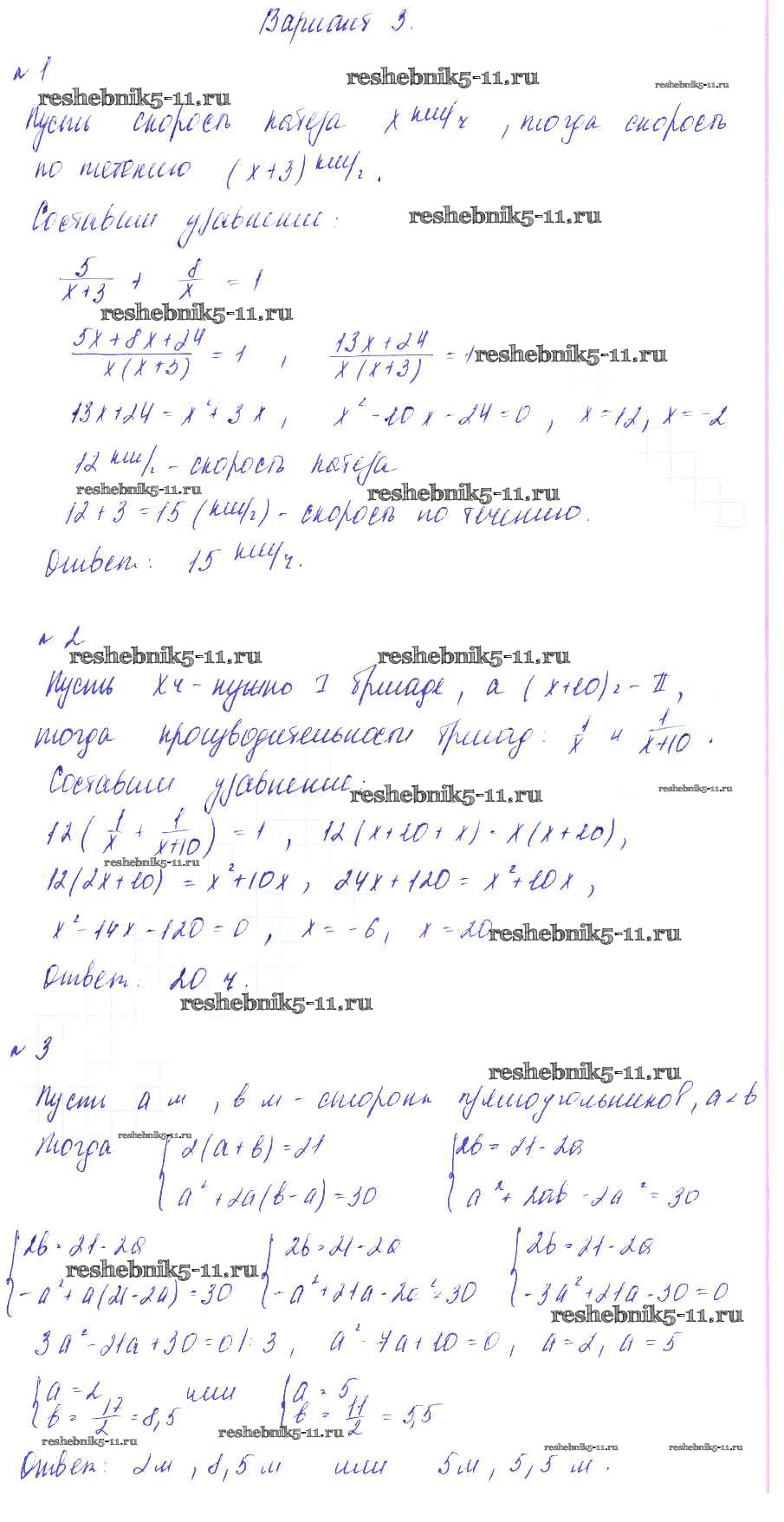 Готовая домашняя работа с ответами по Алгебре за 8 класс Зив, Гольдич Дидактические материалы Виктория плюс 2012 ФГОС - СР №13. Решение задач с помощью квадратных уравнений Вариант-3